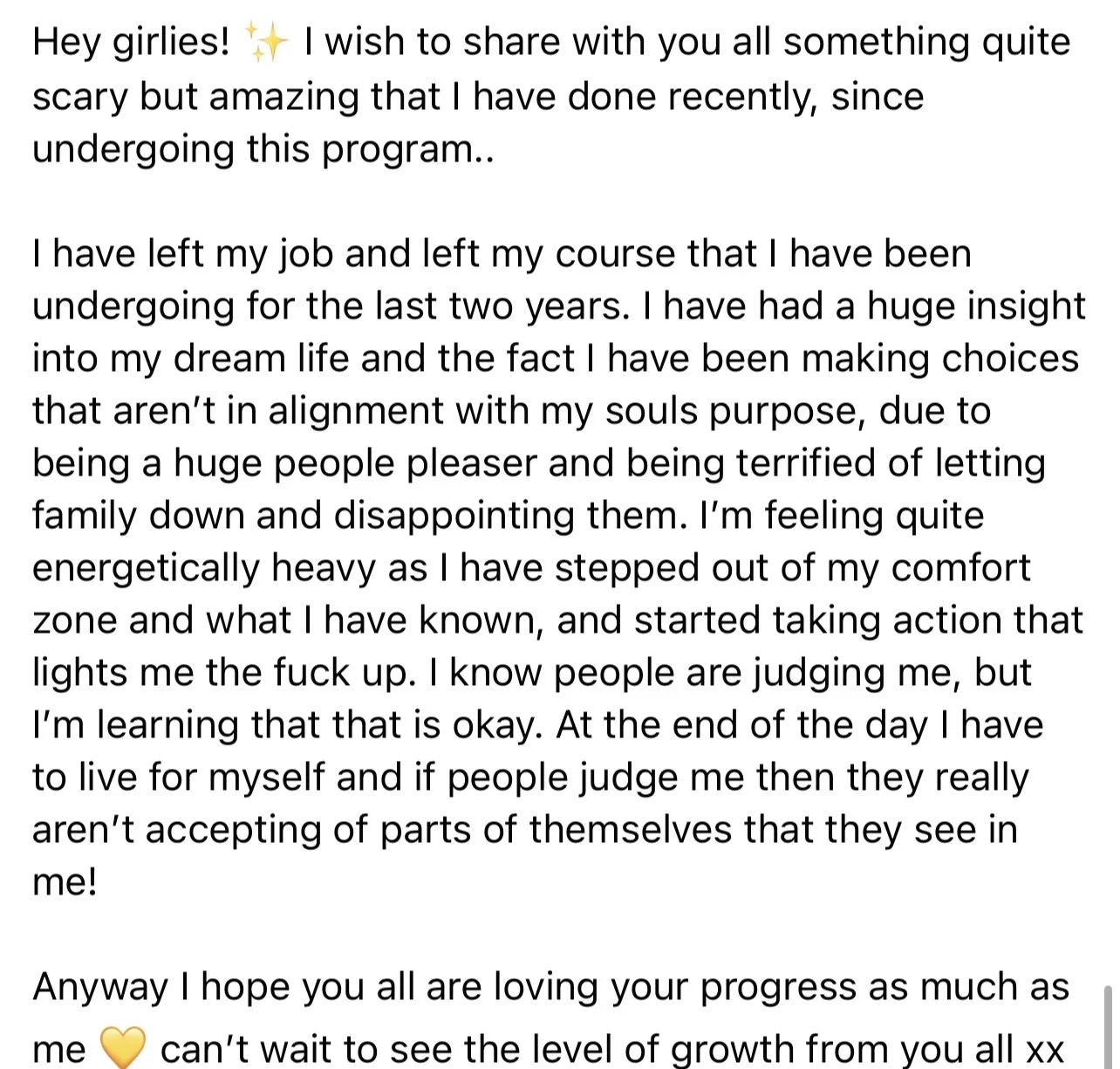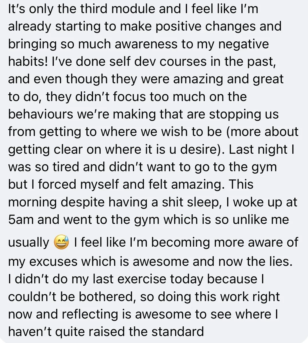 Lifetime access, so no matter how you feel or what you’re going through you can come back to these trainings
